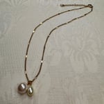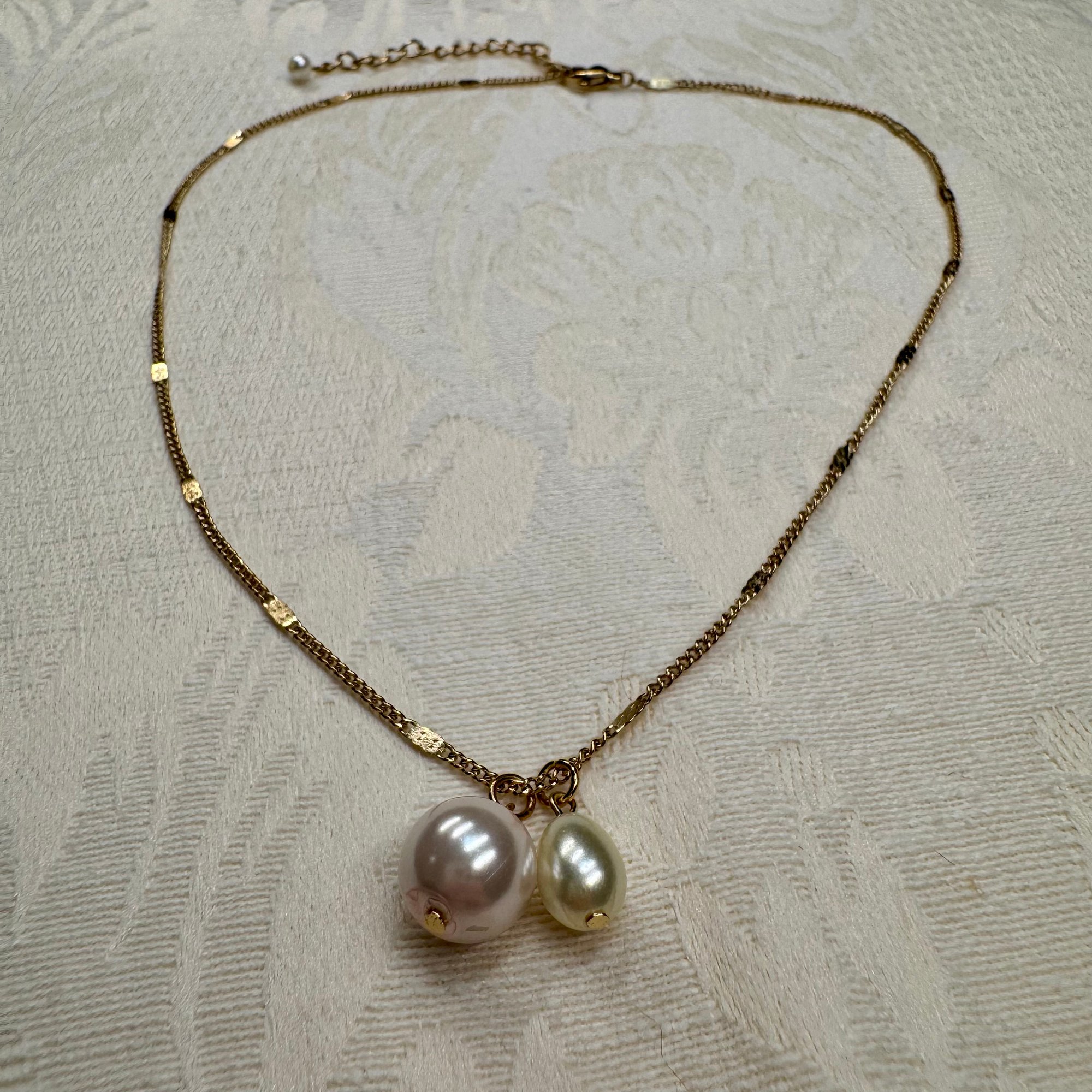15-inch (with 2-inch extender) PVD gold plated stainless steel chain necklace with secondhand pink and white pearl-style beads.