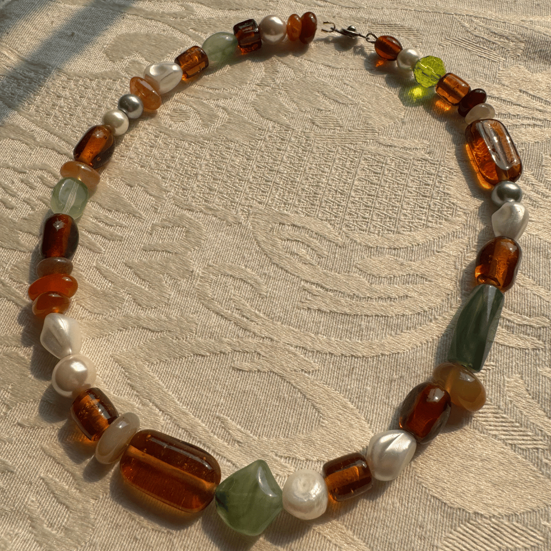 the tablescape necklace is made entirely from secondhand materials - featuring secondhand beads and clasp, and finished with gold-filled findings.