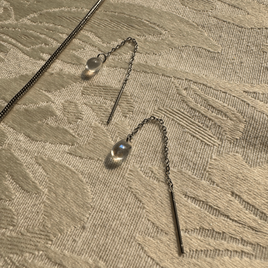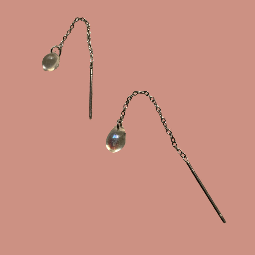 these threader earrings feature an opal bead on the end, like the last drop at the bottom of your glass.